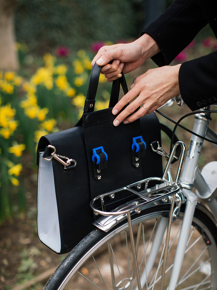 Il se clip et se verrouille sur votre vélo, en un seul geste. Avec les soufflets rétroréfléchissants vous êtes encore plus lumineuse !